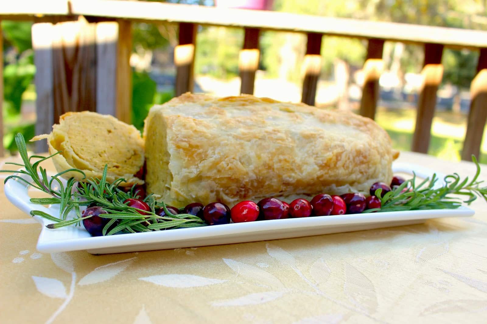 Roll out a sheet of vegan Puff Pastry and wrap it around your cooked roast. Form the dough with your hands so it seals around the loaf.